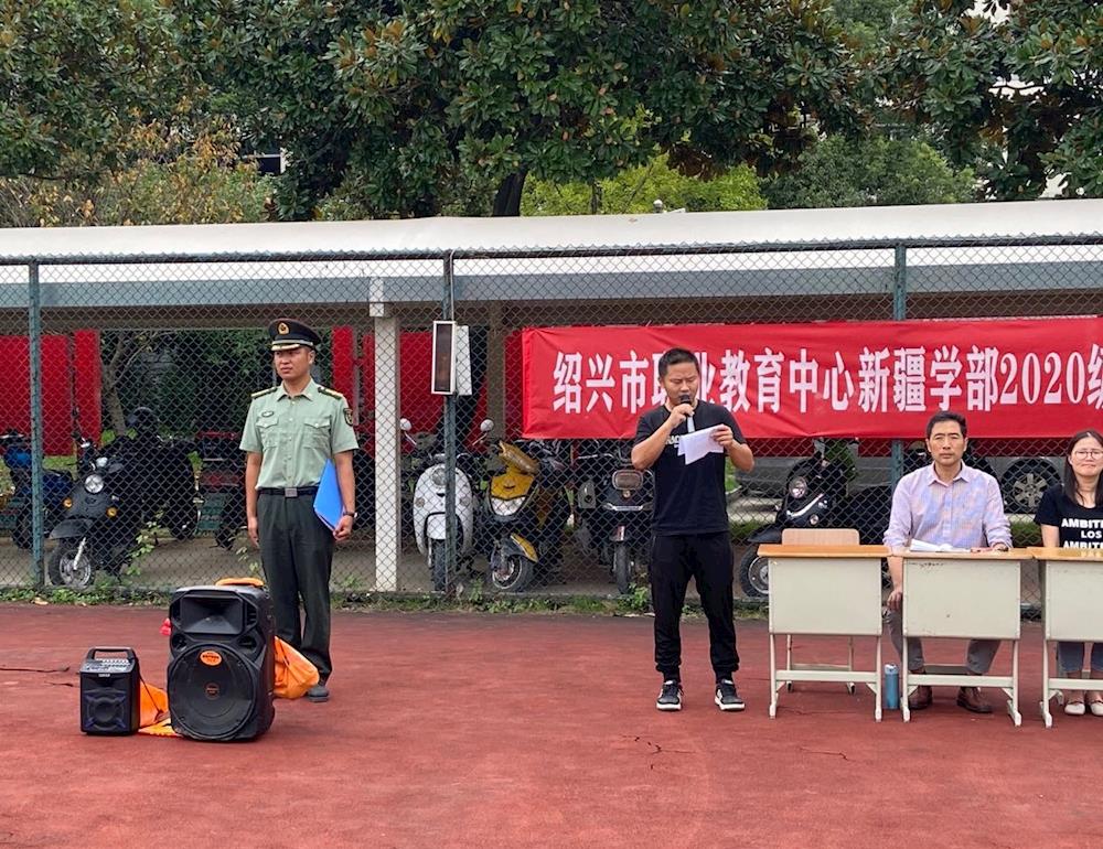 2020年9月28日上午,绍兴市职教中心新疆学部2020级新生军训开营仪式胜利召开,学校党委书记王国标,学部主任丁利萍,德育副主任金华涛以及新生班全体班主任出席。