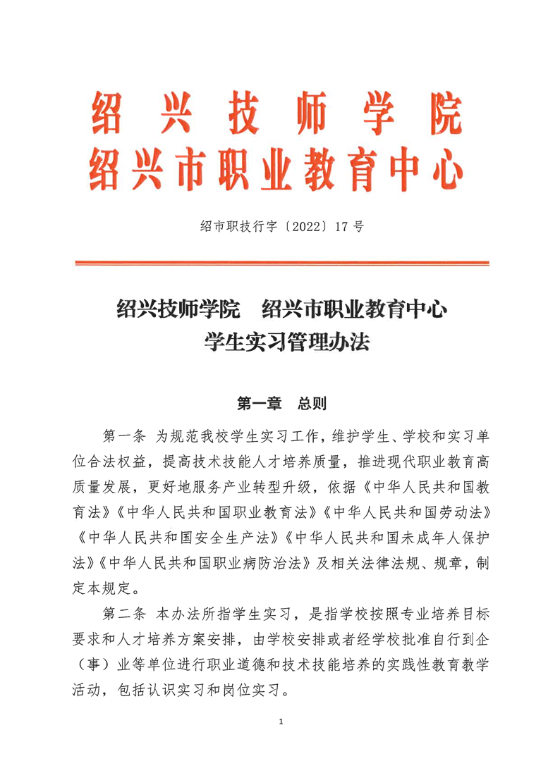 永利集团3044官网欢迎您绍兴市职教中心学生实习管理办法