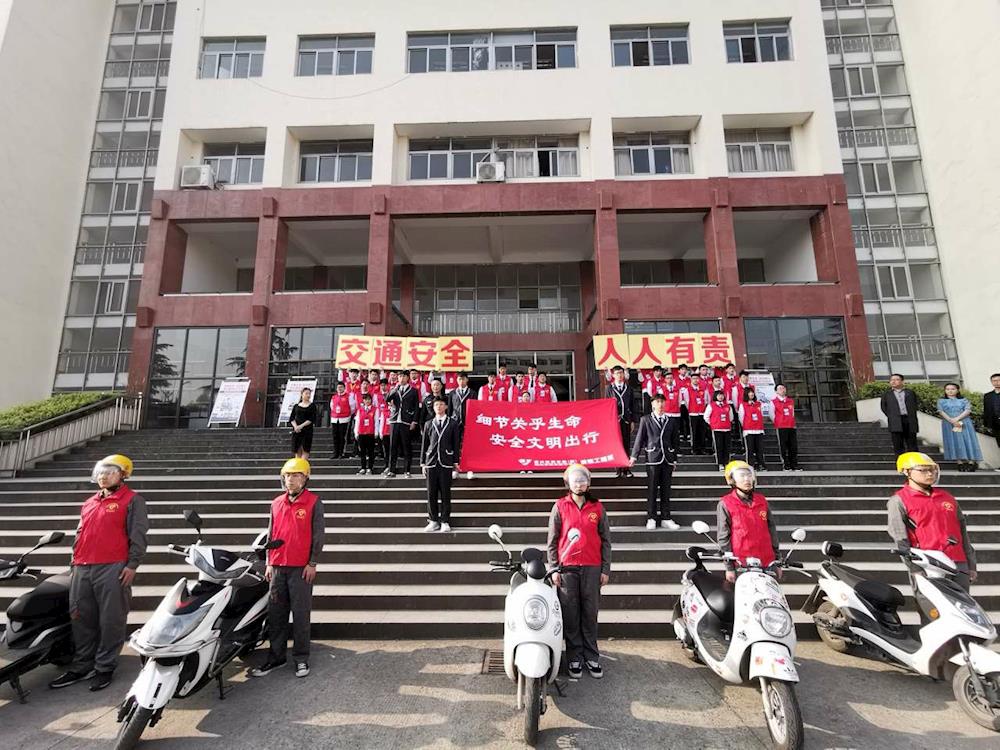 《我和我的祖国》快闪,朗诵《英雄碑颂》,快板《交通安全 文明出行》,商贸系的学生摆出心型队形感恩党和祖国,家长、交警、毕业生、企业老总轮番上场……春天里的永利集团3044官网欢迎您(筹)、市职教中心, 一节名为“国旗下金课”的公开课正在火热进行中。