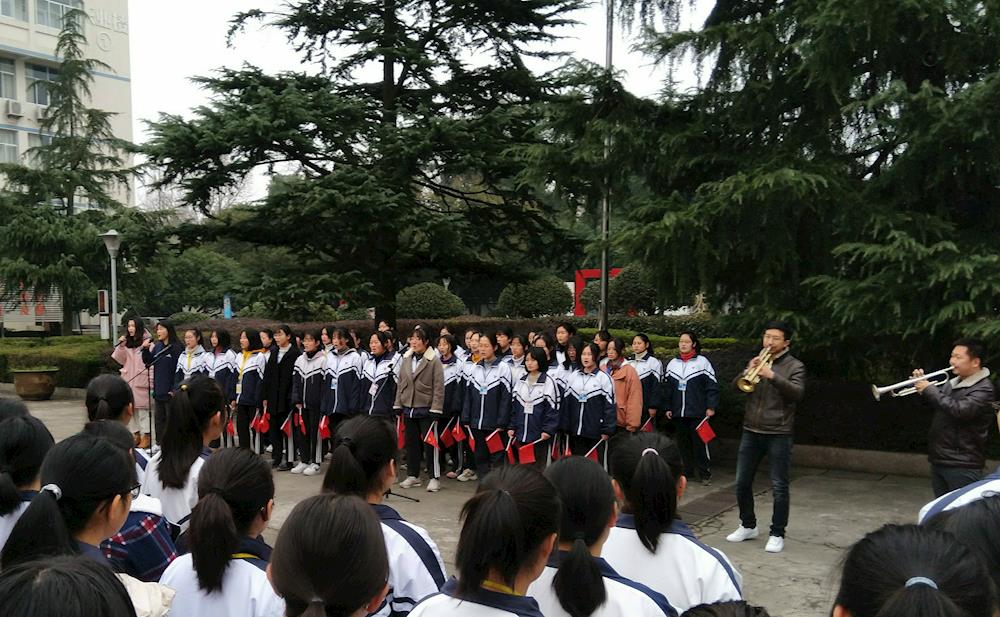 周一,这所拥有大学校园气质的职业学校,校园文化长出的育人智慧充溢整个广场。学校中间广场上, 以“在春天遇见你 遂心生美好”大型图片展为背景,全校4000余名师生庄严肃立,在学校铜管乐队激越有力的国歌奏响中,面向国旗,唱出心中的信仰,随后一起演绎一节有关梦想与志向、诗和远方的心灵课程。